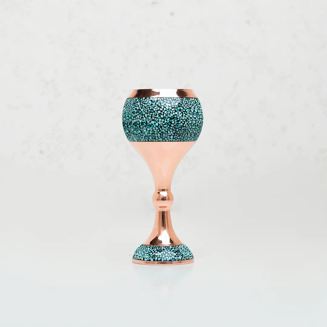 فیروزه کوبی چیست؟ یکی از معروفترین صنایع دستی ایران میباشد. هنرمندان خوشذوق صنایع دستی آقاجانی قطعات کوچک سنگ فیروزه را به صورت موزاییکوار روی سطح زیرساختهای مسی میچسبانند. یکی از نکات مهم در تشخیص مرغوبیت ظروف فیروزهکوبی شده، وجود تکه سنگهای فیروزهی یکدست در اندازههای متناسب با سطح زیرساخت است. هرچه فاصلهی بین سنگها کمتر باشد و اندازه سنگها با یکدیگر و سطح زیرساخت متناسبتر باشد، ظرف فیروزه کوبی کیفیت، مرغوبیت و ارزش بیشتری دارد.